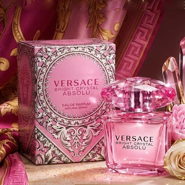 Versace Bright Crystal Absolu Eau de Perfume In a Bright Pink Glass Bottle With a Crystal Style Cap