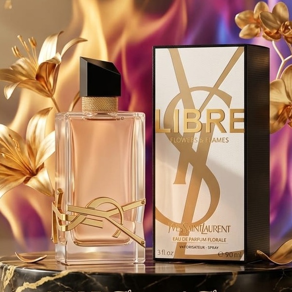 Yves Saint Laurent Nude Beige Glass Perfume Bottle With Gold Accents And a Black CapYves Saint Laurent Nude Beige Glass Perfume Bottle With Gold Accents And a Black Cap